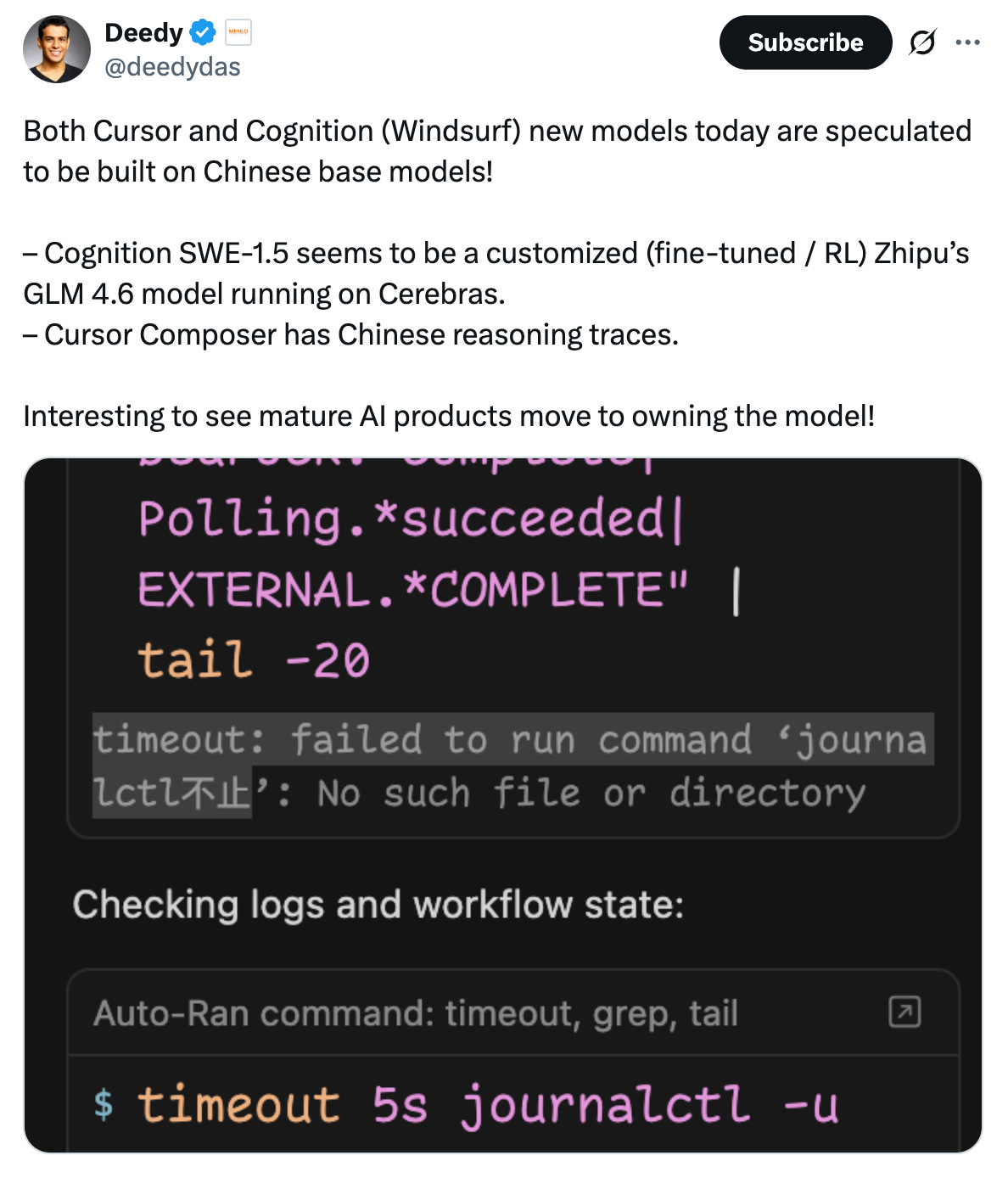 Nhưng Cognition AI không phải là trường hợp duy nhất bị phơi bày. Cursor, một gã khổng lồ lập trình khác của Mỹ vừa chứng kiến giá trị định giá tăng gấp ba lần lên 9,9 tỷ USD chỉ trong vòng 6 tháng, cũng rơi vào tình cảnh tương tự khi giới thiệu công cụ mới Composer.