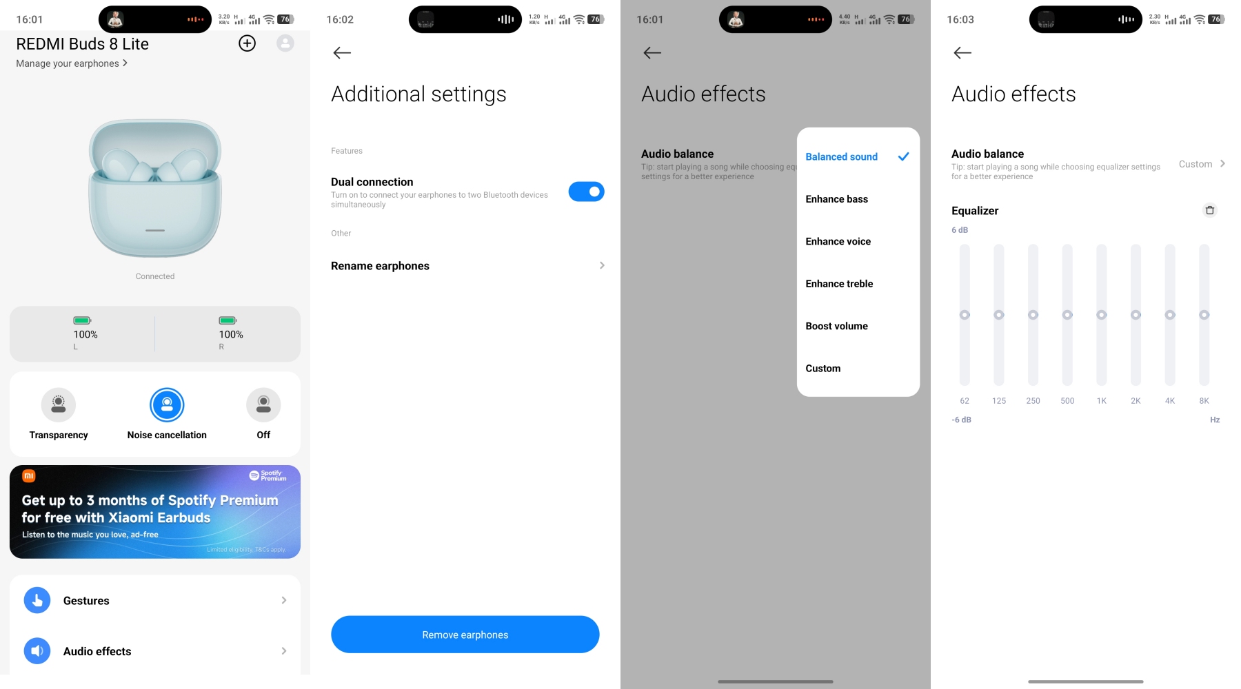 Tai nghe hỗ trợ ứng dụng Xiaomi Earbuds, cho phép chỉnh EQ, thay đổi thao tác cảm ứng và cập nhật firmware. Khi giảm bớt dải trung và cao trong EQ, âm thanh trở nên cân bằng và dễ nghe hơn, hạn chế cảm giác chói tai.