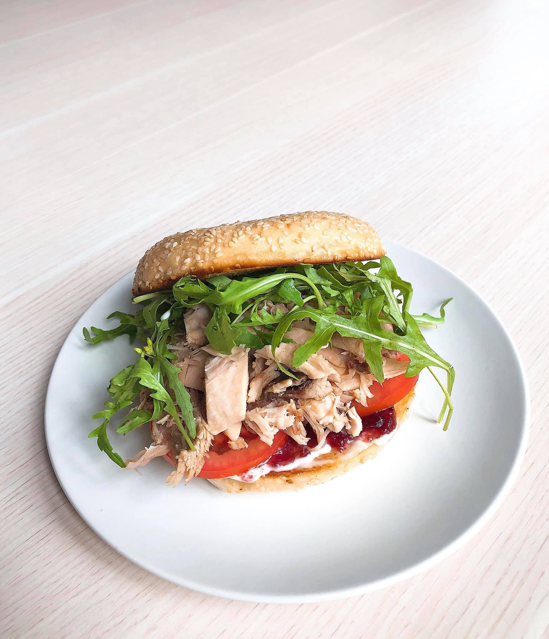 Bánh mỳ sandwich Thổ Nhỹ Kỳ và bánh mỳ sandwich với quả bơ, rau arugula, phô mai kem và tôm.