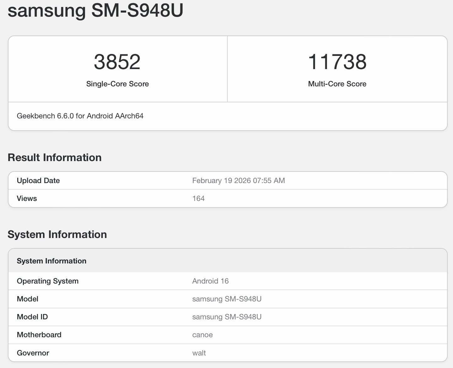 Theo các kết quả rò rỉ mới nhất trên Geekbench 6, Samsung Galaxy S26 Ultra đạt 3.852 điểm đơn nhân và 11.738 điểm đa nhân.