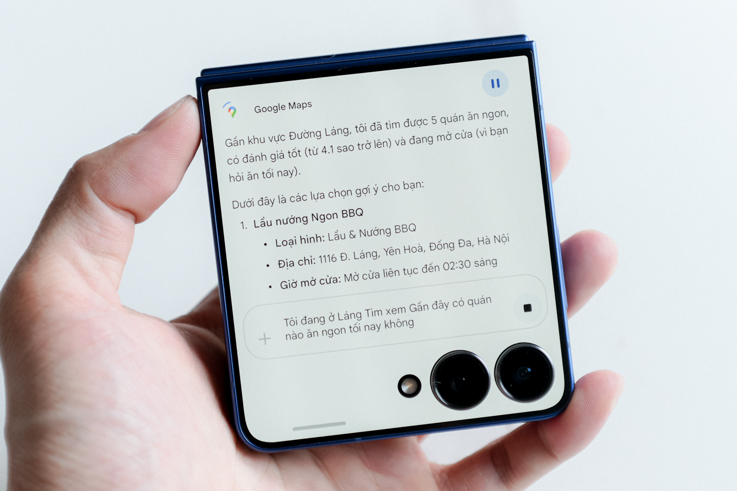 Mùa cuối năm là quãng thời gian mà điện thoại trở thành trung tâm của mọi thứ: lịch họp, tin nhắn, tìm kiếm, nhắc nhở, cuộc gọi, kế hoạch du lịch. Càng nhiều ứng dụng, người dùng càng dễ rơi vào vòng xoáy thông báo. Gemini Live xuất hiện như một lối thoát đơn giản. Đây là công cụ trò chuyện trực tiếp bằng giọng nói, hoạt động theo thời gian thực và hiểu ngữ cảnh của người dùng. Không cần mở ứng dụng hay gõ phím, chỉ cần nói và câu trả lời xuất hiện trong vài giây. Điều khiến trải nghiệm này khác biệt là việc Gemini Live hoạt động trơn tru ngay cả khi máy đang gập, qua màn hình ngoài Flex Window.