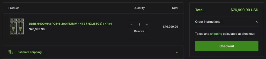 Nemix, một công ty Mỹ chuyên cung cấp thiết bị bộ nhớ và lưu trữ cho các cơ quan chính phủ và nhà thầu, đã niêm yết một bộ kit RAM DDR5 dung lượng 4TB trên trang web của mình với mức giá thật điên rồ: 77.000 USD.