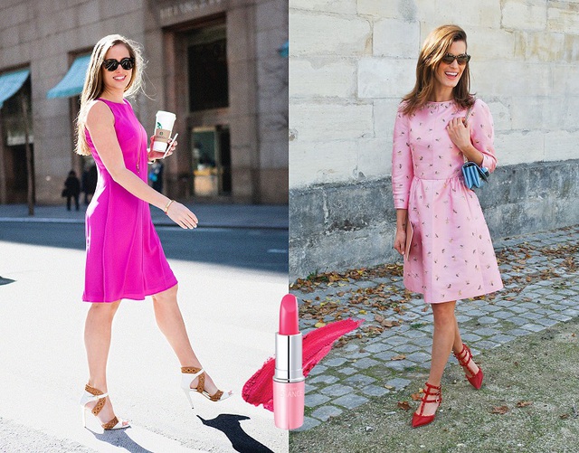 Hồng lumineux: Sắc hồng neon pha cánh sen rực rỡ kết hợp cùng những bộ váy xòe với họa tiết floral hồng sẽ là lựa chọn tuyệt vời cho quý cô yêu thích sự sang trọng. Màu son này cũng rất “hợp rơ” với trang phục màu xanh biển.