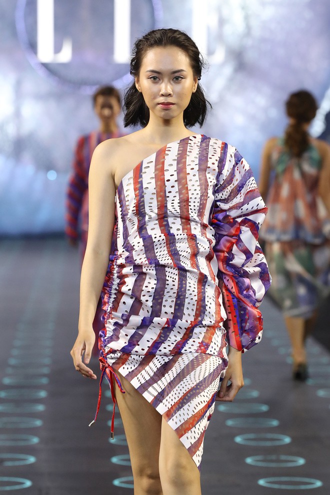 Có đến 6 BST được ra mắt trong đêm diễn này. Thế nhưng, nhận được tràng pháo tay tán thưởng giòn giã nhất phải kể đến sự hiện diện của Hà Tăng trên sân khấu Elle Fashion Journey 2018 trong vai trò NTK chính thức.