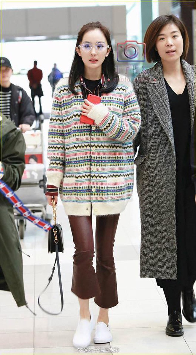 Trên sân khấu thì sang chảnh nhưng khi ra sân bay, Dương Mịch dường như chẳng còn thiết tha đến việc thay đổi style, quần áo.