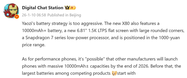 Honor, thương hiệu nổi tiếng với các dòng điện thoại có pin dung lượng lớn, sắp ra mắt mẫu Honor X80. Theo thông tin từ Digital Chat Station, chiếc smartphone này sẽ được trang bị pin 10.000mAh, đáp ứng nhu cầu sử dụng lâu dài của người dùng.