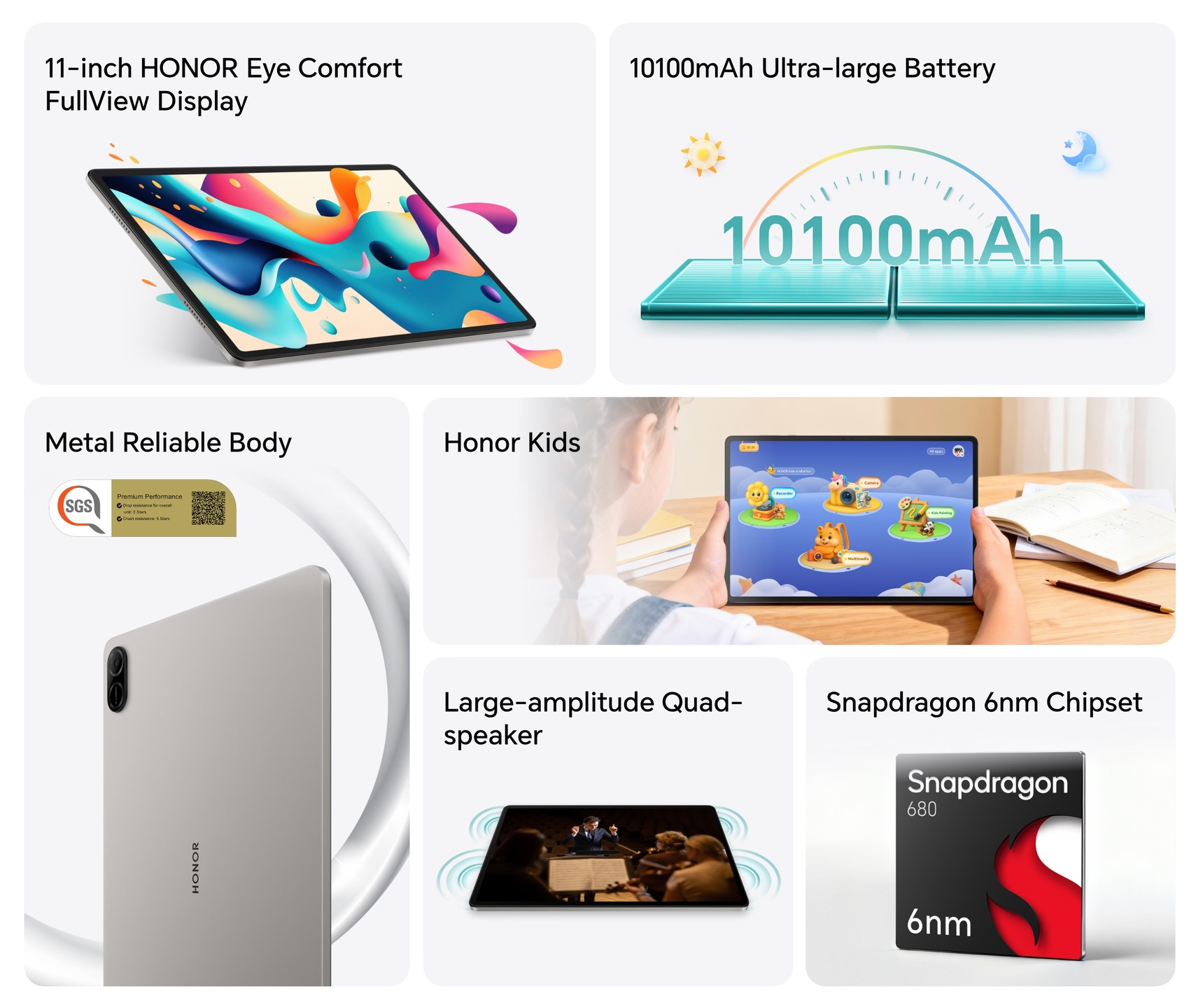 Honor giới thiệu tablet Android phổ thông mới tại Ả Rập Xê Út với thân kim loại mỏng 7,25mm, màn hình 11 inch 90Hz và pin 10.100mAh, nhưng vẫn sử dụng Snapdragon 680 ra mắt từ năm 2021.
