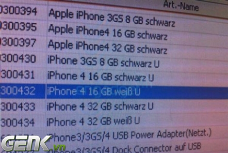 Mới đây, một tấm ảnh chụp hệ thống quản lý hàng trong kho của hãng Vodafone tại Đức đã khiến cho nhiều fan hâm mộ của Apple hào hứng vì có sự xuất hiện của 2 mẫu hàng iPhone 4 trắng bản 16GB và 32GB. Điều này chứng tỏ hãng điện thoại của Đức đã nhập về iPhone 4 trắng và chuẩn bị cho ngày lên sóng.