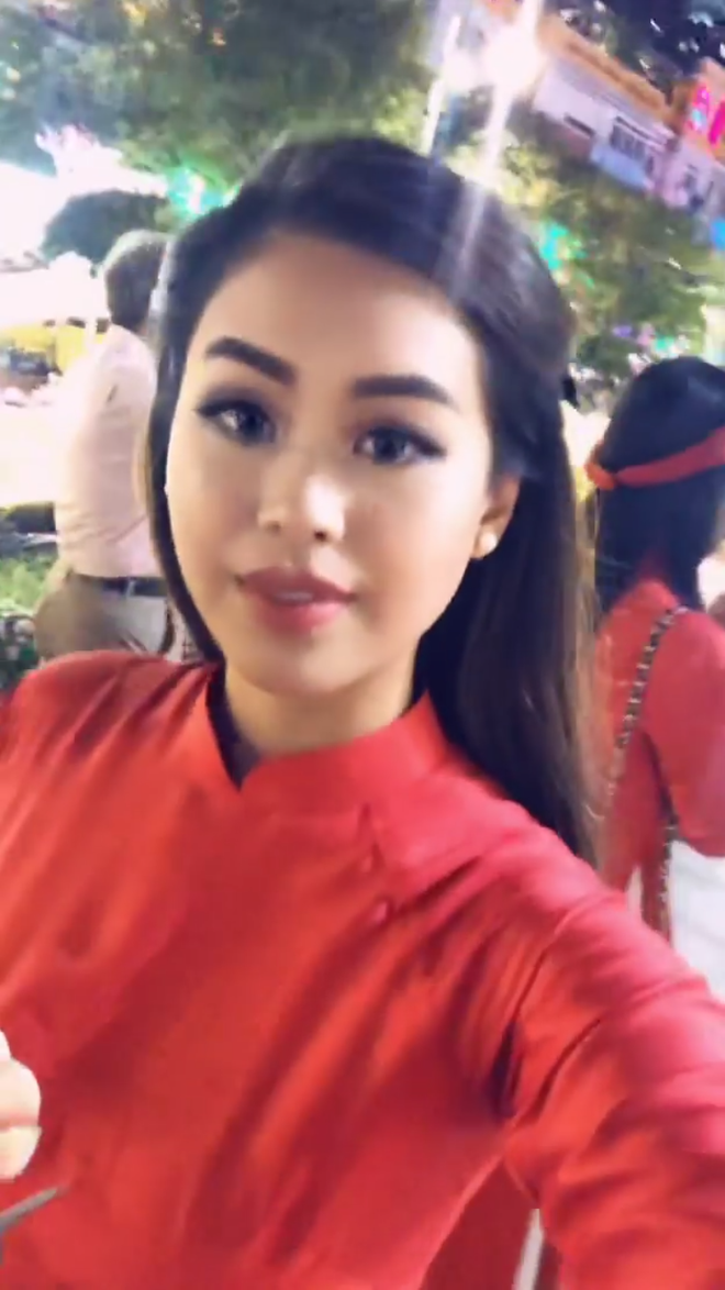 Tiên Nguyễn cũng khoe ảnh mặc áo dài cùng em trai Hiếu Nguyễn du xuân ở Sài Gòn. Thay vì vi vu đi du lịch sang chảnh thì cô nàng đã quyết định ở nhà đón Tết truyền thống.