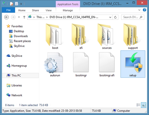 Truy cập vào ổ đĩa cài đặt Windows 8.1 và tìm đến tập tin Setup.exe
