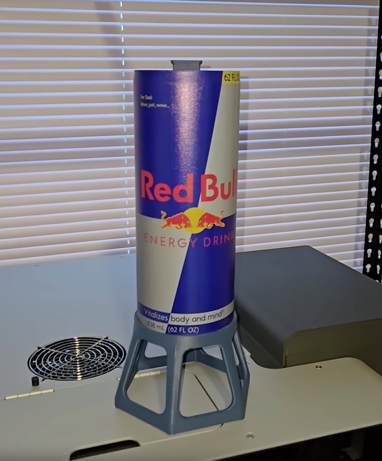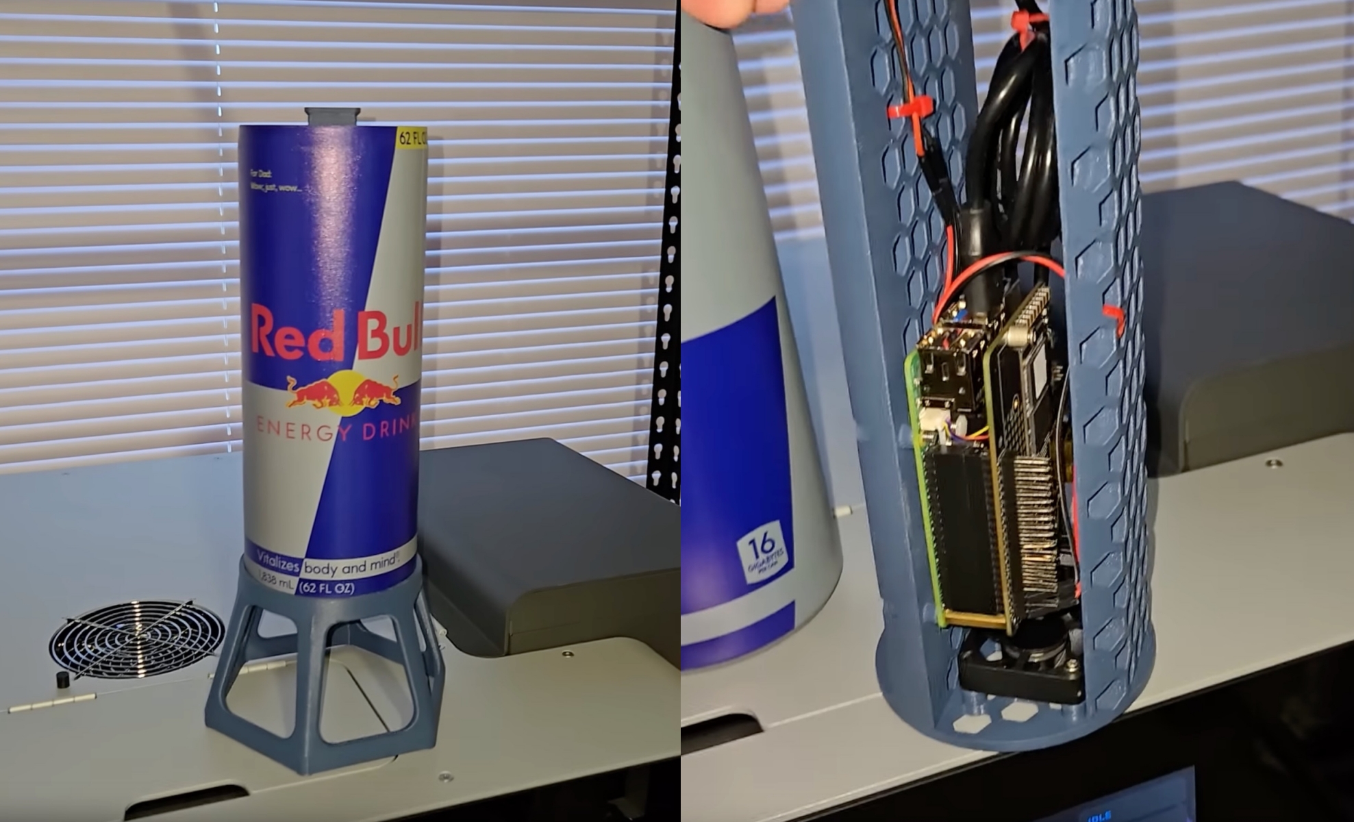 Titan3DAZ cho biết anh tạo ra sản phẩm này như một món quà Giáng sinh dành cho cha mình, người yêu thích game retro. Để hoàn thiện ngoại hình, anh sử dụng phần mềm FreeCAD để thiết kế toàn bộ kết cấu, đồng thời dùng máy in UV có trục xoay để in họa tiết Red Bull chính xác trên bề mặt hình trụ.