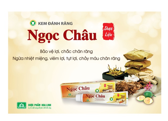 Viêm lợi, nhiệt miệng, chảy máu chân răng, tụt lợi, răng lung lay ê buốt đã có Kem đánh răng dược liệu Ngọc Châu Kem đánh răng dược liệu Ngọc Châu với thành phần tinh chất dược liệu (Một dược, Đinh hương, Vỏ cau, Hoa hòe, Cam thảo,…), bổ sung Vitamin và Muối. Sản phẩm được nghiên cứu bởi đội ngũ dược sỹ chuyên ngành Bào chế với sự tham vấn của các bác sỹ Nha khoa.Các thành phần được phối hợp một cách khoa học, giúp phát huy tác dụng hiệp đồng lên cả răng và lợi, không chỉ làm sạch, bảo vệ bên ngoài mà còn giúp tăng cường lưu thông máu, nuôi dưỡng răng lợi từ gốc. Kem đánh răng dược liệu Ngọc Châu giúp ngừa nhiệt miệng, viêm lợi, tụt lợi, chảy máu chân răng, viêm quanh chân răng, sâu răng, đau nhức răng, chắc chân răng giúp răng chắc khỏe từ gốc. |