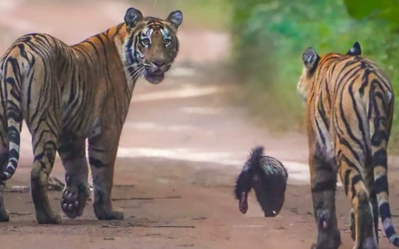 Giữa không gian hoang dã của Ấn Độ, một cảnh tượng hiếm có đã được ghi lại: một con lửng mật bé nhỏ nhưng nổi tiếng về độ hung hãn bất ngờ chạm trán cùng lúc hai hổ Bengal.