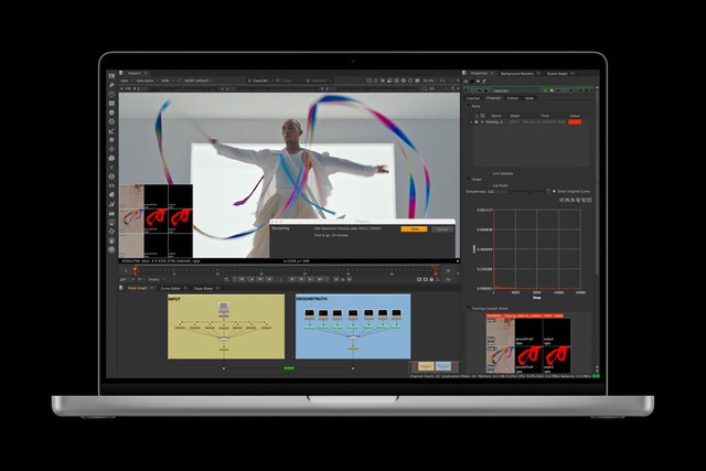 Theo Apple, MacBook Pro mới đạt hiệu năng AI cao hơn tới 4 lần so với thế hệ trước và cao hơn tới 8 lần so với các mẫu dùng chip M1. Khả năng xử lý LLM và tạo ảnh AI nhanh hơn đáng kể, hỗ trợ các nhà phát triển và chuyên gia sáng tạo chạy mô hình AI trực tiếp trên máy. GPU cũng tăng hiệu năng đồ họa tới 50% so với M4 Pro và M4 Max, cho phép dựng hình 3D và xử lý hiệu ứng theo thời gian thực.