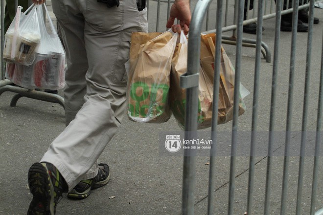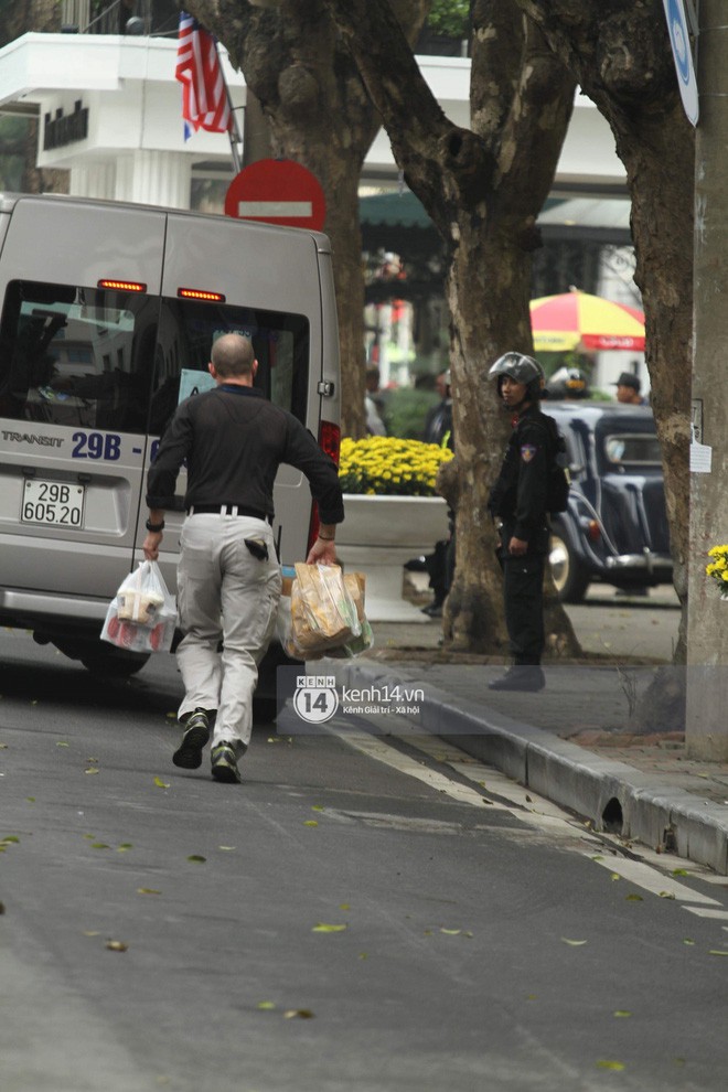 Theo quan sát của phóng viên, mật vụ Mỹ "tay xách nách mang" khá nhiều đồ ăn nhanh, nước ngọt và cà phê,... rồi nhanh chóng di chuyển về khu vực hội nghị để tiếp tục nhiệm vụ.