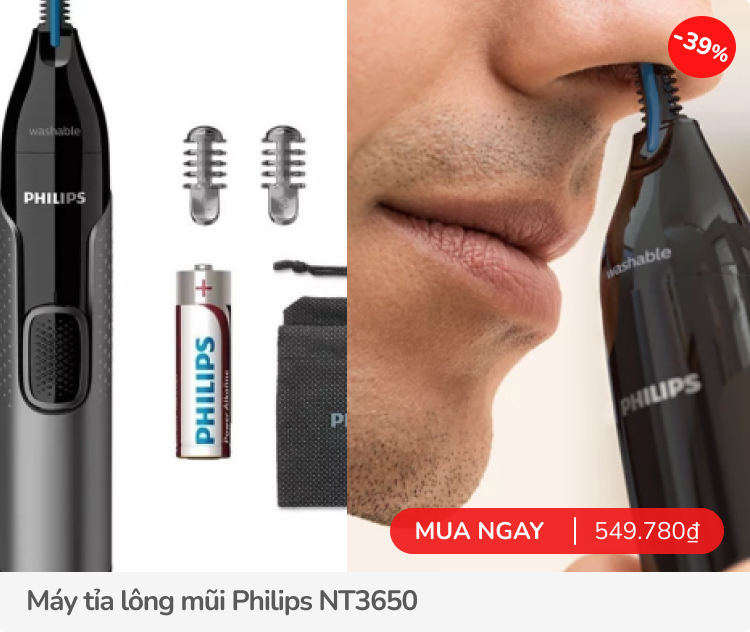 Nếu ưu tiên độ hoàn thiện và cảm giác sử dụng ổn định lâu dài, Philips NT1650 là lựa chọn cao cấp hơn từ Philips. Máy được hoàn thiện chắc chắn, vận hành êm, hướng tới sự an toàn khi sử dụng thường xuyên. Mức giá khoảng 550.000 đồng, cao hơn mặt bằng chung nhưng đổi lại là độ tin cậy của thương hiệu lâu năm.