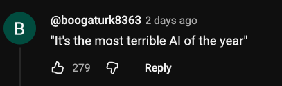 Một người dùng Youtube nhái lại câu hát trong quảng cáo, nhưng thay "khoảng thời gian tồi tệ nhất" thành "AI tồi tệ nhất".