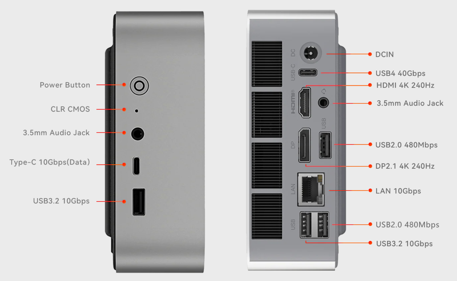Một trong những điểm đáng chú ý của SER10 Max là cổng mạng LAN 10Gbps tích hợp sẵn, phù hợp cho các môi trường làm việc yêu cầu băng thông cao. Máy cũng có kết nối USB4 bên cạnh các cổng giao tiếp khác.