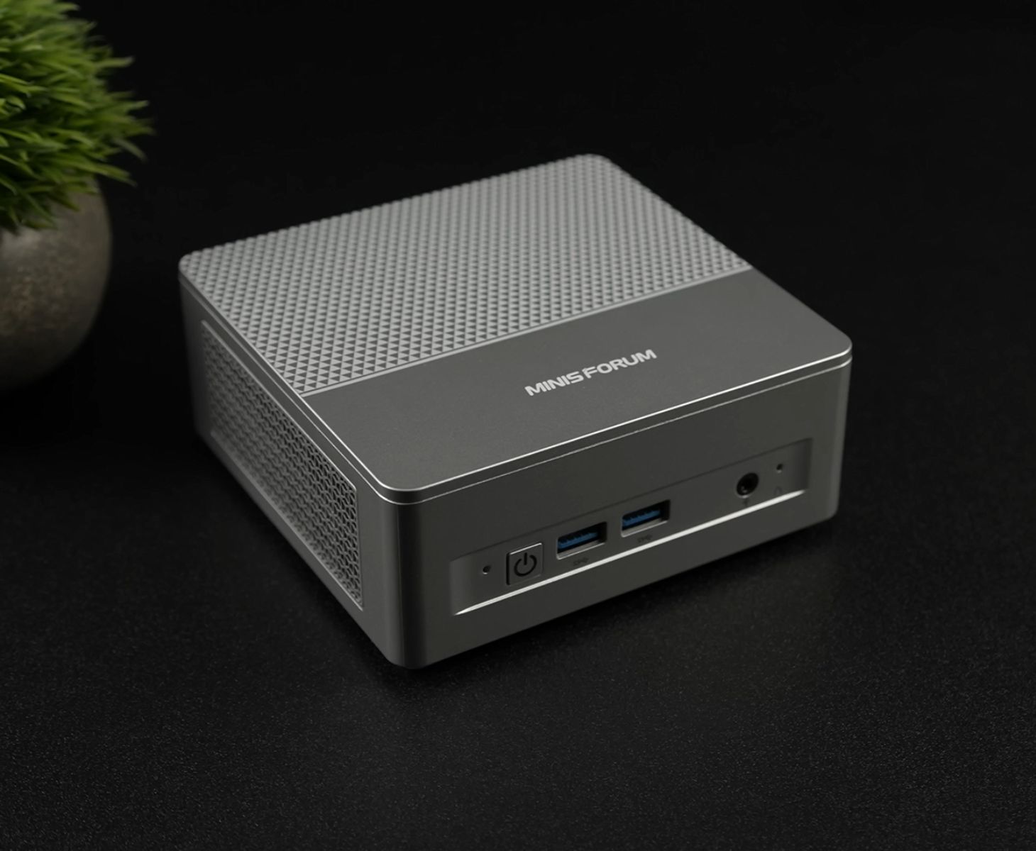 Toàn bộ hệ thống được đặt trong thân máy nhỏ gọn, kích thước và khối lượng khoảng 0,67kg, khá tương đồng với Mac mini. Trong hộp bán lẻ, Minisforum đi kèm giá treo VESA, cáp HDMI và adapter nguồn 120W, cho thấy định hướng sử dụng lâu dài ở mức tải cao.