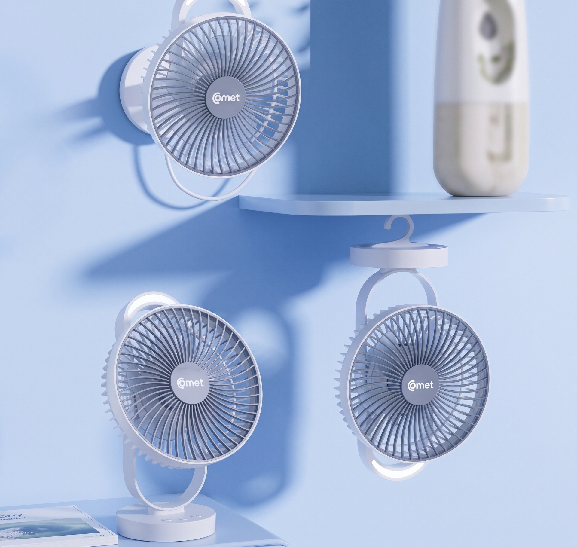 Ngoài ra, một số mẫu quạt tích điện treo tường, quạt kẹp cũng được ưa chuộng. Các mẫu quạt này là lựa chọn phù hợp với những khu vực có diện tích hạn chế, cần tối ưu không gian. Một số mẫu như: Quạt sạc Comet CRF1606 treo tường, để bàn, có đèn LED; Quạt tích điện Tobe cầm tay, để bàn, treo tường, kẹp xe đẩy cho bé.