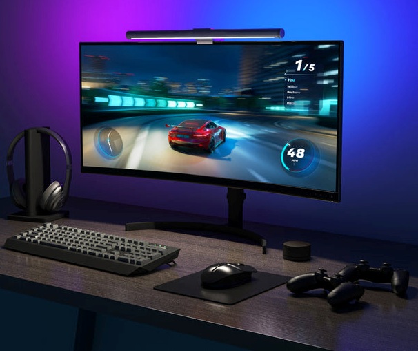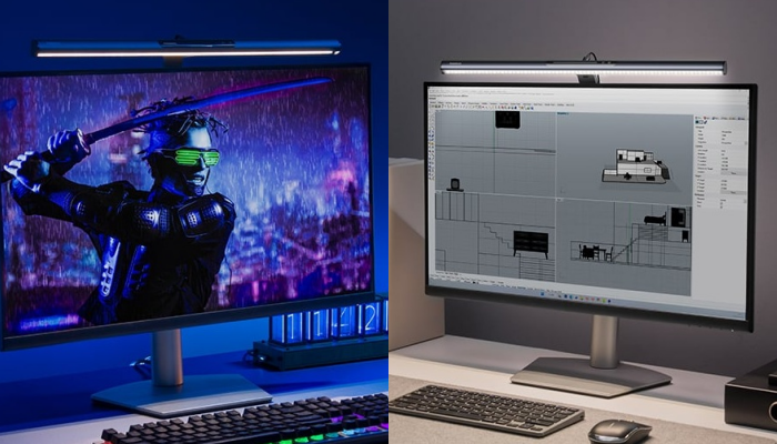 Thanh đèn được gắn trực tiếp lên cạnh trên của màn hình bằng ngàm kẹp từ tính, không chiếm diện tích bàn. Người dùng có thể điều chỉnh nhiệt độ màu và độ sáng thông qua nút điều khiển, phù hợp với nhiều bối cảnh như đọc tài liệu, làm việc đêm hoặc chơi game.