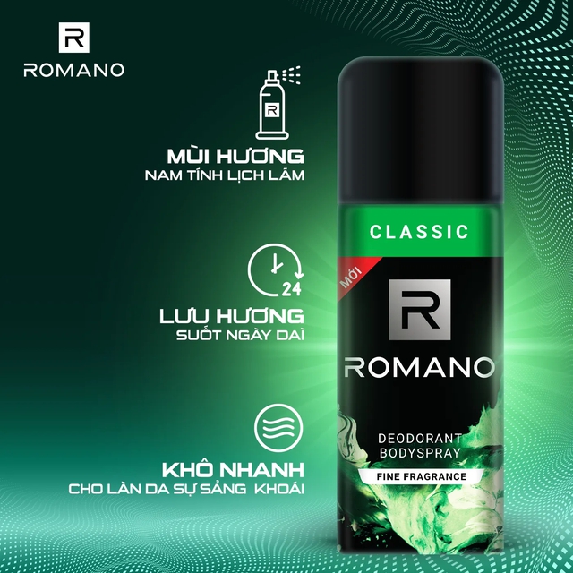 Combo 2 xịt toàn thân ngăn mồ hôi và mùi cơ thể Romano 150ml