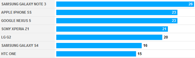 (GenK.vn) - Nexus 5 đạt số điểm không khác biệt so với LG G2 hay Xperia Z1.