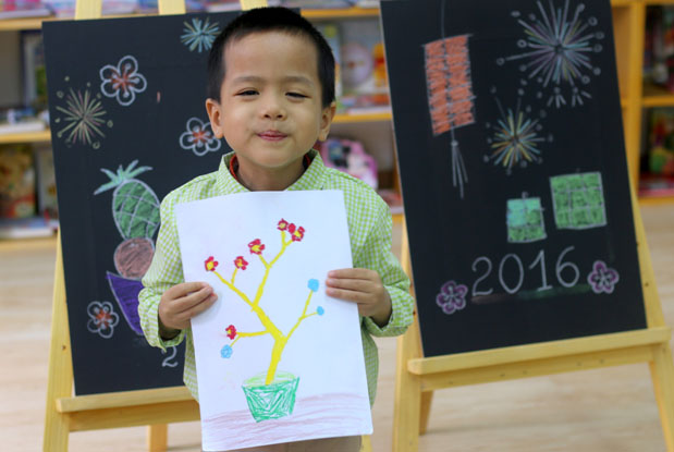 Tết cổ truyền năm 2016 đang đến thật gần. Hình ảnh Tết với những chiếc bánh chưng xanh, quả dưa hấu đỏ, hoa đào thắm tươi trong những bức tranh ngộ nghĩnh, những nét vẽ thơ ngây nhưng đầy sáng tạo của các bé, khiến cho mỗi người lớn trong chúng ta, đều cảm thấy Tết thân thương, và nhiều hứng khởi.