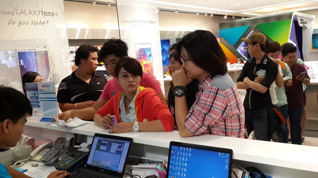 Tại nhiều hệ thống nhà bán lẻ như Viễn Thông A, Thế Giới Di Động, Trần Anh, Nguyễn Kim… hàng trăm khách hàng hâm mộ dòng Note đã xếp hàng để mua sản phẩm từ 5h sáng. Thêm vào đó, các cửa hàng trải nghiệm và bán sản phẩm Samsung (Samsung Experience Shop) còn có cơ hội nhận được chiếc máy tính bảng Galaxy Tab 3 Lite phiên bản 3G cho những khách hàng mua Galaxy Note 4 trong hai ngày 24 và 25 này.