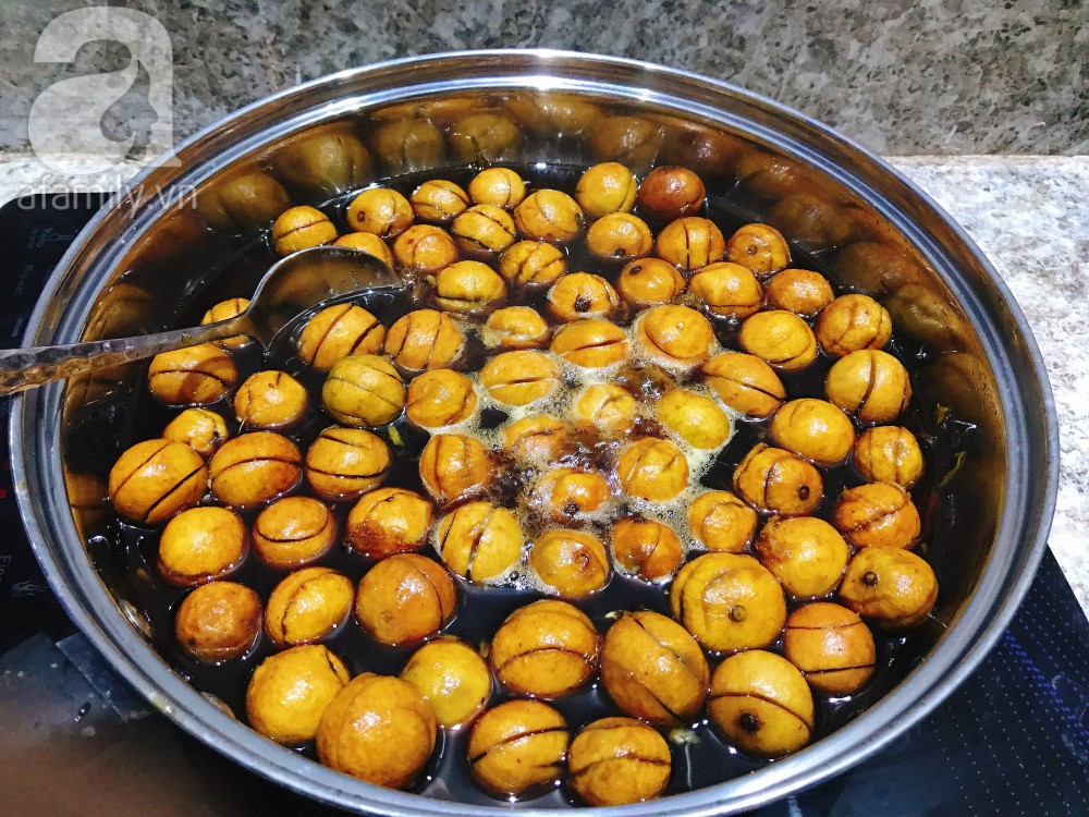 Sau khi ướp xong cho sấu vào sên khoảng 20 phút, khi nước đường sánh sệt là được.