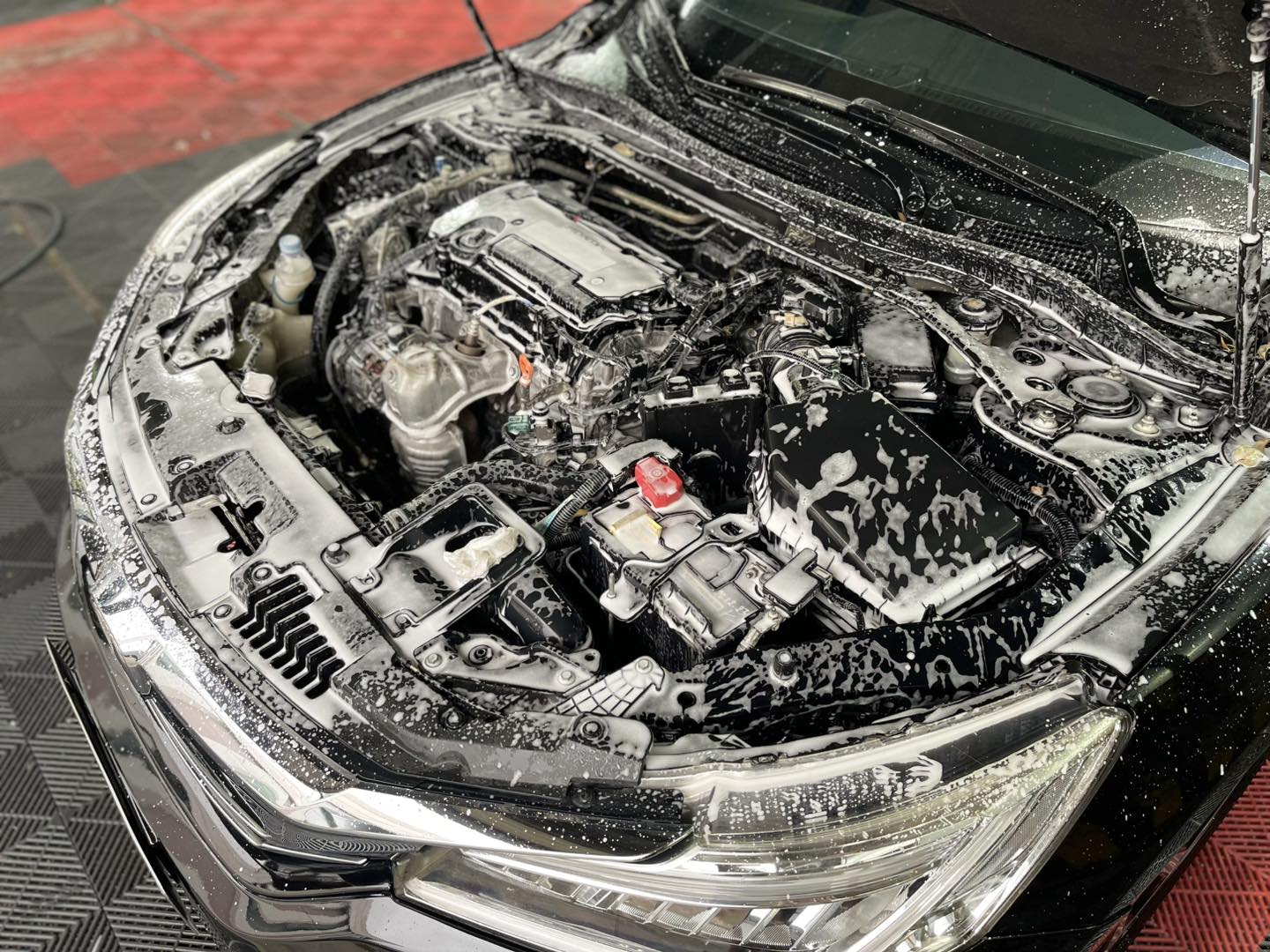 Một khoang máy xe được rửa toàn bộ. Ảnh: MXH