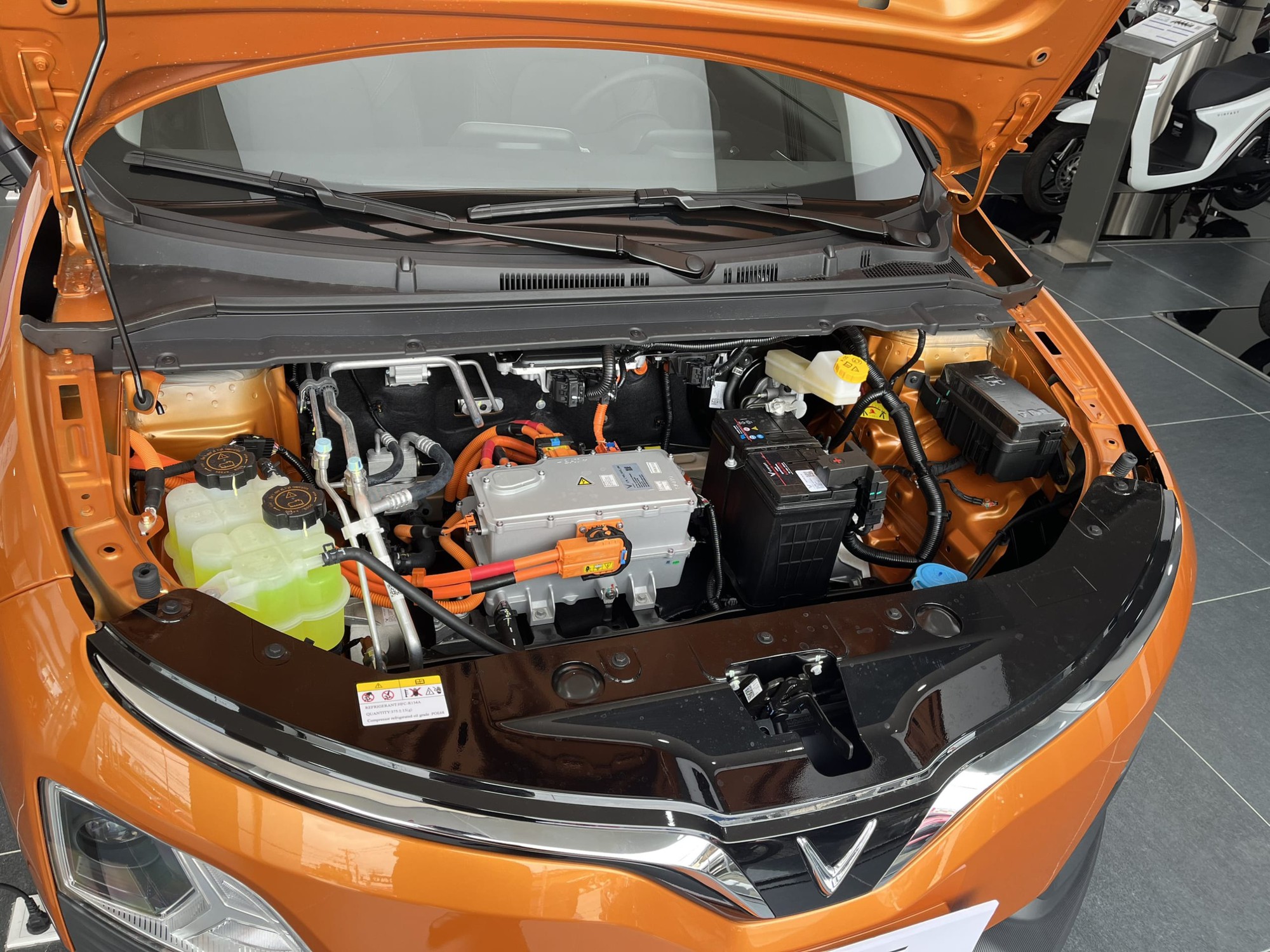 Khoang máy một mẫu xe điện tại Việt Nam. Ảnh: MXH