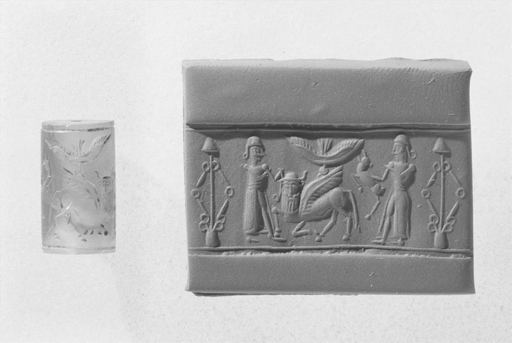 Con dấu hình trụ thời đế chế Mitanni, hiện đang được trưng bày tại Bảo tàng Nghệ thuật Metropolitan ở thành phố New York. (Ảnh: Livescience)