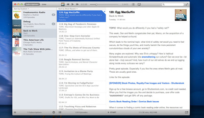 Instacast cho Mac là tiện ích chuyên dụng cho việc sử dụng các podcast trên Mac. Với Instacast, bạn có thể tìm kiếm, download, sắp xếp tất cả các podcast của mình. Nếu bạn đang sở hữu thiết bị chạy iOS, ứng dụng cũng cho phép đồng bộ nội dung podcast trên Mac với iOS.