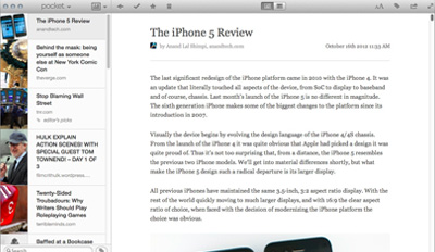 Pocket là tên gọi mới của ứng dụng “Read It Later” trước đây, cho phép bạn lưu trữ lại các bài báo, video Youtube...để đọc khi có thời gian rảnh. Bạn có thể chỉ lưu đường link của bài viết, hoặc lưu offline để đọc khi máy không có kết nối internet.