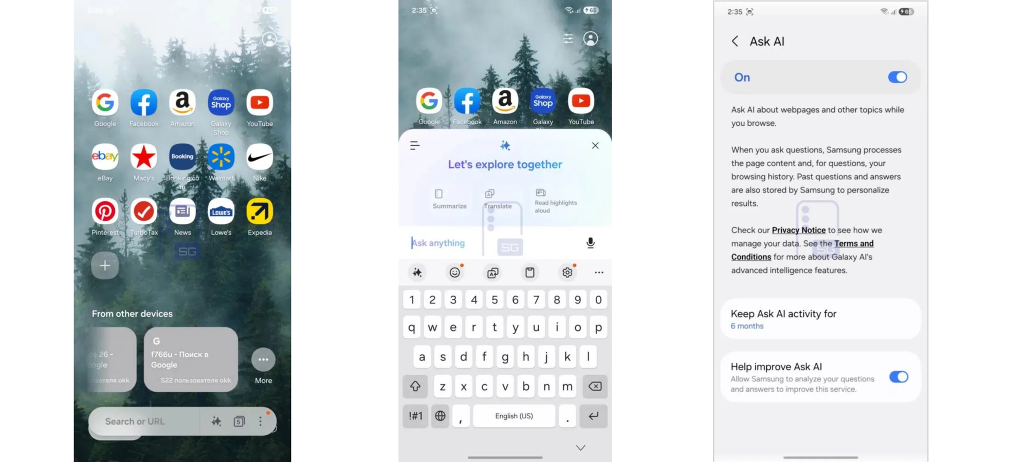 Samsung Internet có thanh tìm kiếm nổi và Ask AI
