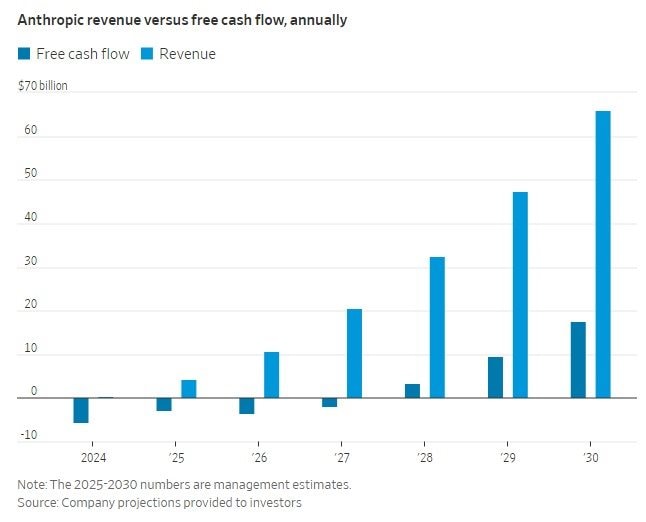 Tuy nhiên đến năm 2026, Anthropic dự báo sẽ giảm tỷ lệ đốt tiền mặt xuống khoảng một phần ba doanh thu, so với 57% của OpenAI. Tỷ lệ đốt tiền của Anthropic giảm thêm xuống 9% vào năm 2027, trong khi tỷ lệ này vẫn giữ nguyên đối với OpenAI.