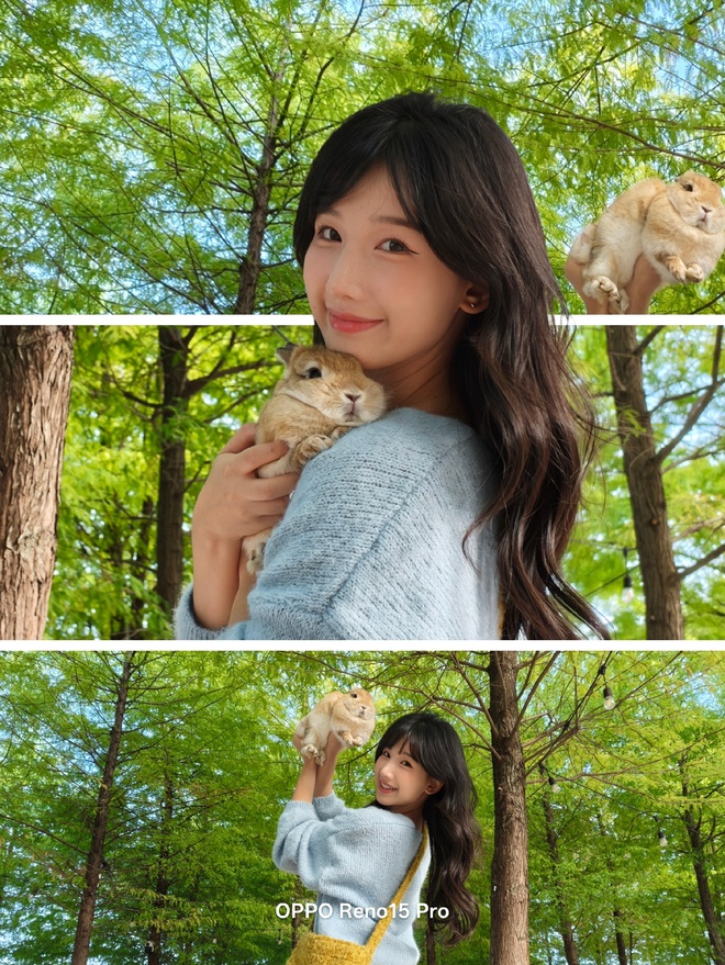 Một điểm đáng chú ý khác là khả năng xử lý ảnh và video bằng công nghệ AI. Reno15 cho phép người dùng kết hợp nhiều ảnh live photo thành một bức ảnh ghép độc đáo với nhân vật, thú cưng hoặc các nhân vật ảo. Nhờ thuật toán AI độc quyền từ OPPO, người dùng còn có thể thực hiện thao tác tách nền chỉ với một lần nhấn và dễ dàng tạo ra các video sáng tạo.