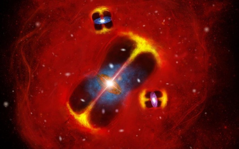 Giả thuyết được nhóm nghiên cứu đưa ra liên quan đến sự hiện diện của ba hố đen siêu nặng ở trung tâm cụm. Theo giáo sư Scott Chapman thuộc Đại học Dalhousie, các hố đen này có thể đã bơm một lượng năng lượng khổng lồ vào môi trường xung quanh, làm nóng khí giữa các thiên hà và thúc đẩy quá trình tiến hóa của cụm diễn ra nhanh và dữ dội hơn so với dự đoán.