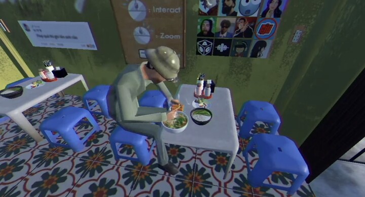 Từng chi tiết trong game được tái hiện tỉ mỉ đến mức ai cũng thấy “giống như nhà mình ở đầu ngõ”, từ nền gạch bông hoa văn cũ và tường sơn xanh lá mạ. Ghế nhựa xanh, lọ đũa và ớt tươi, bảng hiệu vàng chữ đỏ; trên tường dán tờ rơi khoan cắt bê tông, quảng cáo vay nóng và cả khẩu hiệu phòng chống ma túy, những “đặc sản thị giác” đặc trưng của Việt Nam.
