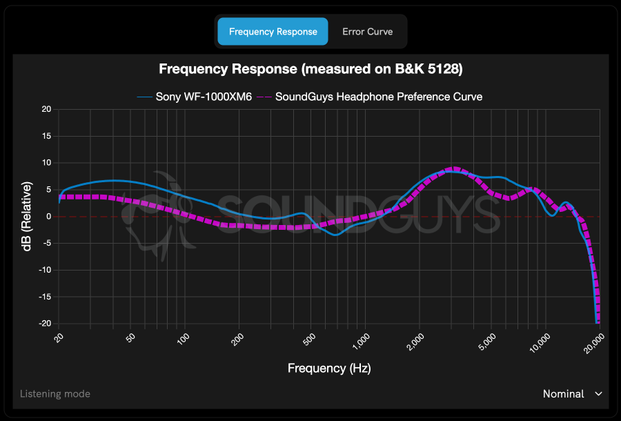 Theo SoundGuys, chất âm mặc định bám khá sát đường cong tham chiếu của họ khi bật ANC. Bass được nhấn nhẹ ở dải thấp, tạo cảm giác đầy đặn hơn nhưng vẫn giữ được độ kiểm soát. Treble có xu hướng sáng hơn ở vùng khoảng 6kHz, giúp tăng độ chi tiết nhưng có thể hơi gắt với người nhạy cảm.