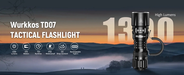 Wurkkos TD07 là mẫu đèn pin chiến thuật cỡ nhỏ, sử dụng pin sạc 18350, phù hợp cho nhu cầu chiếu sáng cá nhân, đi đêm hoặc dùng trong các tình huống khẩn cấp. Đèn sử dụng LED SFT25R với độ sáng tối đa khoảng 1300 lumen, tầm chiếu xa lên tới gần 479m, đáp ứng tốt cả nhu cầu chiếu xa lẫn chiếu rộng. Thiết kế thân đèn gọn, chắc chắn, dễ cầm nắm và mang theo trong balo hoặc túi đồ. Wurkkos TD07 hỗ trợ nhiều chế độ sáng khác nhau, phù hợp cho từng mục đích sử dụng. Đây là lựa chọn đáng cân nhắc cho người cần một thiết bị chiếu sáng bền bỉ, hiệu năng cao trong kích thước nhỏ. Đèn đang được giảm 20% chỉ còn hơn 600.000đ trong đợt sale đón Tết trên Laz Mall.