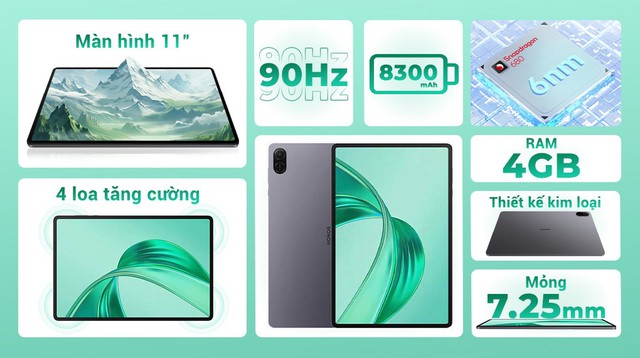 Honor Pad X8a là mẫu máy tính bảng hướng đến nhu cầu giải trí và học tập cơ bản với màn hình TFT LCD 11 inch, tần số quét 90Hz, cho trải nghiệm cuộn và thao tác mượt hơn so với các màn hình 60Hz thông thường. Máy được trang bị RAM 4GB, bộ nhớ trong 128GB, đáp ứng tốt nhu cầu lưu trữ tài liệu, video và ứng dụng phổ biến. Pin dung lượng 8300mAh đủ dùng cho nhiều giờ xem phim hoặc học online trong ngày. Sản phẩm được phân phối chính hãng, đi kèm chế độ bảo hành 18 tháng, phù hợp với người dùng cần một thiết bị màn hình lớn, pin tốt, mức giá dễ tiếp cận trong dịp mua sắm Tết. Sản phẩm đang được giảm giá tổng cộng đến 1.6 triệu trong khung giờ sale trên Lazada.