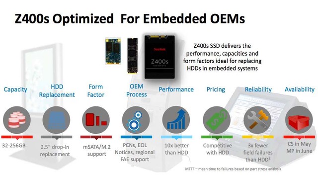 Rizwan Ahmed, Giám đốc tiếp thị của SanDisk, cho biết Z400 có 4 phiên bản với dung lượng lần lượt là 32GB, 64 GB, 128 GB và 256 GB với 3 chuẩn kết nối mSATA, 2.5-inch SATA và M2. Ngoài ra, Z400 cũng có tốc độ đọc và tốc độ ghi đáng kể khi 2 chỉ số này đạt mức lần lượt là 500MB/s và 380MB/s. Tức là nó chỉ kém sản phẩm cao cấp nhất của hãng là SanDisk Extreme Pro SSD 240GB một chút khi mà Extreme Pro có tốc độ đọc và ghi là 550MB/s và 520MB/s, chưa kể mức giá cho sản phẩm này là 140 USD.