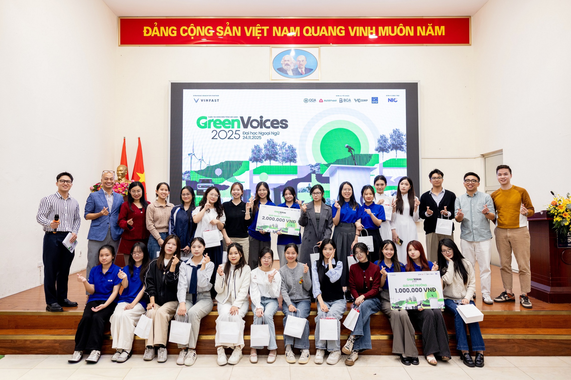 Green Voices 2025 là cuộc thi hùng biện nằm trong chuỗi hoạt động Hành trình giáo dục chuyển đổi xanh do VCCorp phối hợp với Trung tâm Đổi mới sáng tạo Quốc gia cùng đối tác giáo dục chiến lược VinFast tổ chức. Tại mỗi điểm trường, cuộc thi hùng biện mở ra không gian học thuật để sinh viên bộc lộ tư duy phản biện, khả năng lập luận cùng góc nhìn độc đáo về môi trường, giao thông xanh và lối sống bền vững.