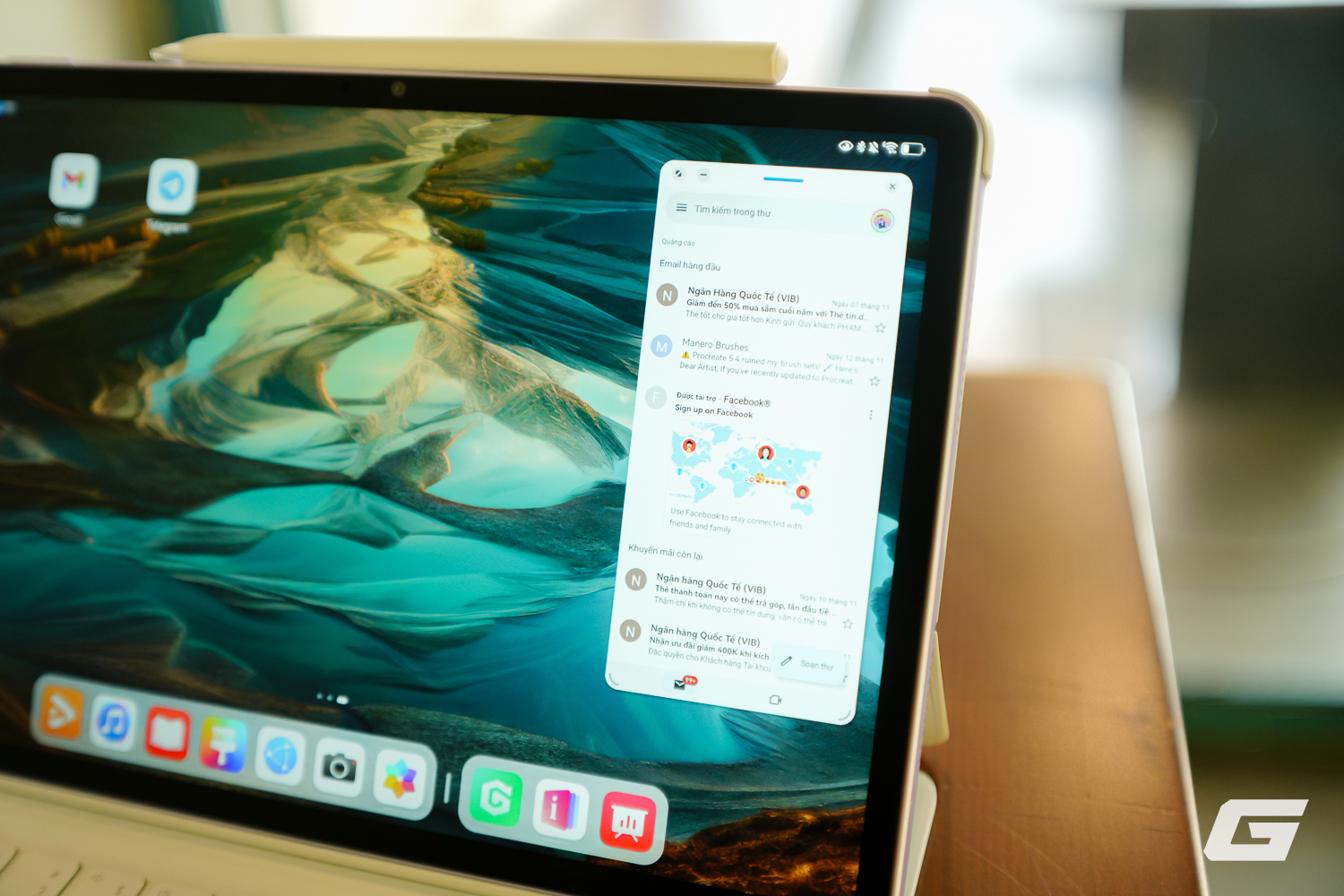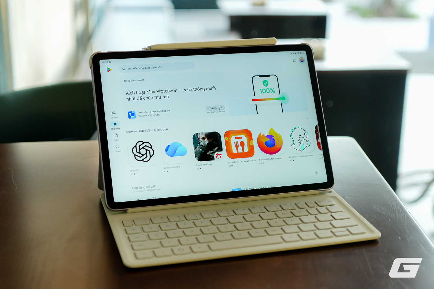 Độ nhám bề mặt này cũng mang lại cảm giác viết giống giấy hơn, đặc biệt khi sử dụng với bút M Pencil Gen 3 đi kèm trong đợt mở bán. Độ trễ thấp, độ bám đầu bút tốt và khả năng mô phỏng các mức lực khiến việc ghi chú hoặc phác thảo trở nên tự nhiên hơn nhiều so với các màn hình trơn truyền thống. Bên cạnh đó, máy còn hỗ trợ ánh sáng phân cực tròn, công nghệ giảm nhấp nháy DC dimming, đạt các chứng nhận từ SGS và TÜV Rheinland về giảm ánh sáng xanh và giảm mỏi mắt, giúp người dùng làm việc lâu mà ít khó chịu.