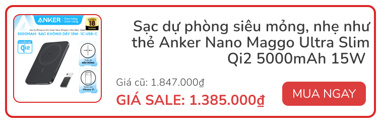 Anker Nano Maggo Ultra Slim Qi2 5000mAh 15W nhỏ gọn