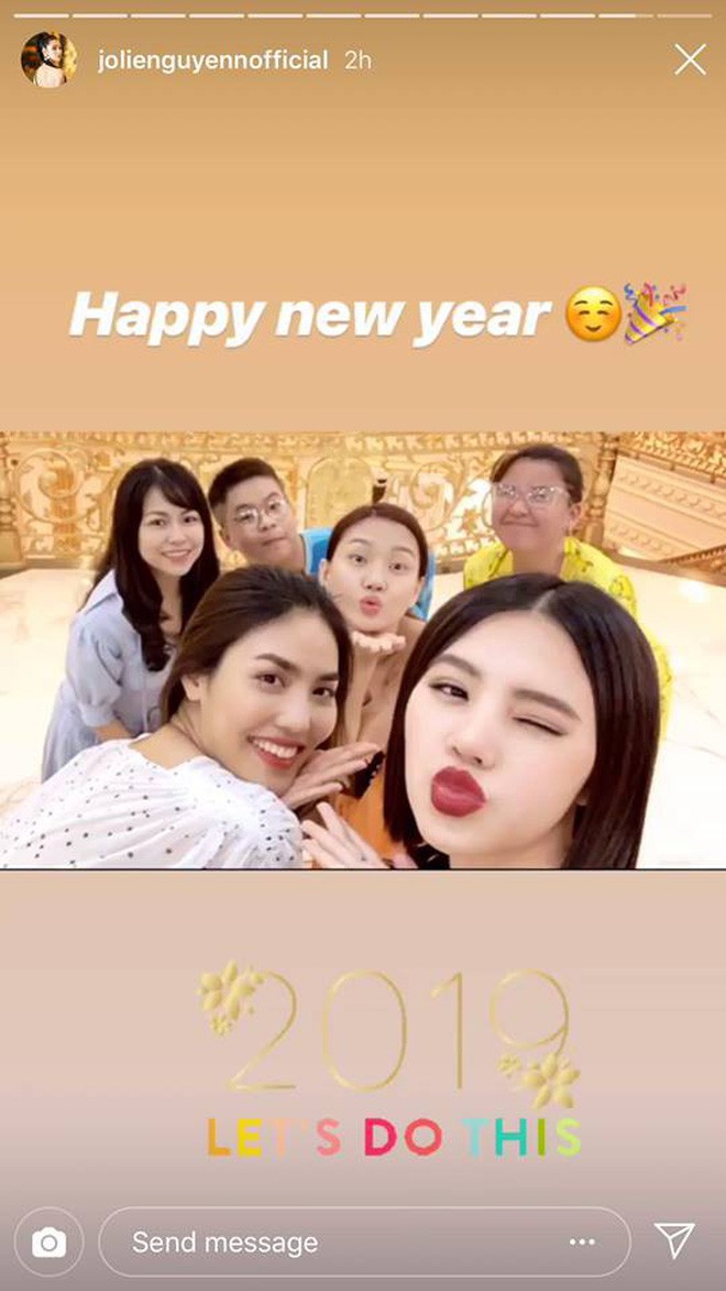 Chẳng hạn như Tiên Nguyễn cùng các anh em Hiếu Nguyễn, Phillip Nguyễn, Louis Nguyễn, chị dâu Tăng Thanh Hà tưng bừng với party quy mô siêu hoành tráng tại gia thì Giang Lê hay Thảo Nhi Lê lại đón năm mới bên cạnh bạn trai tại nhà hàng đắt đỏ... Hay như Hoa hậu "nhà giàu" Jolie Nguyễn thì tình cảm hơn một chút khi quyết định gọi video cùng mẹ vì đang phải đón năm mới xa nhà.