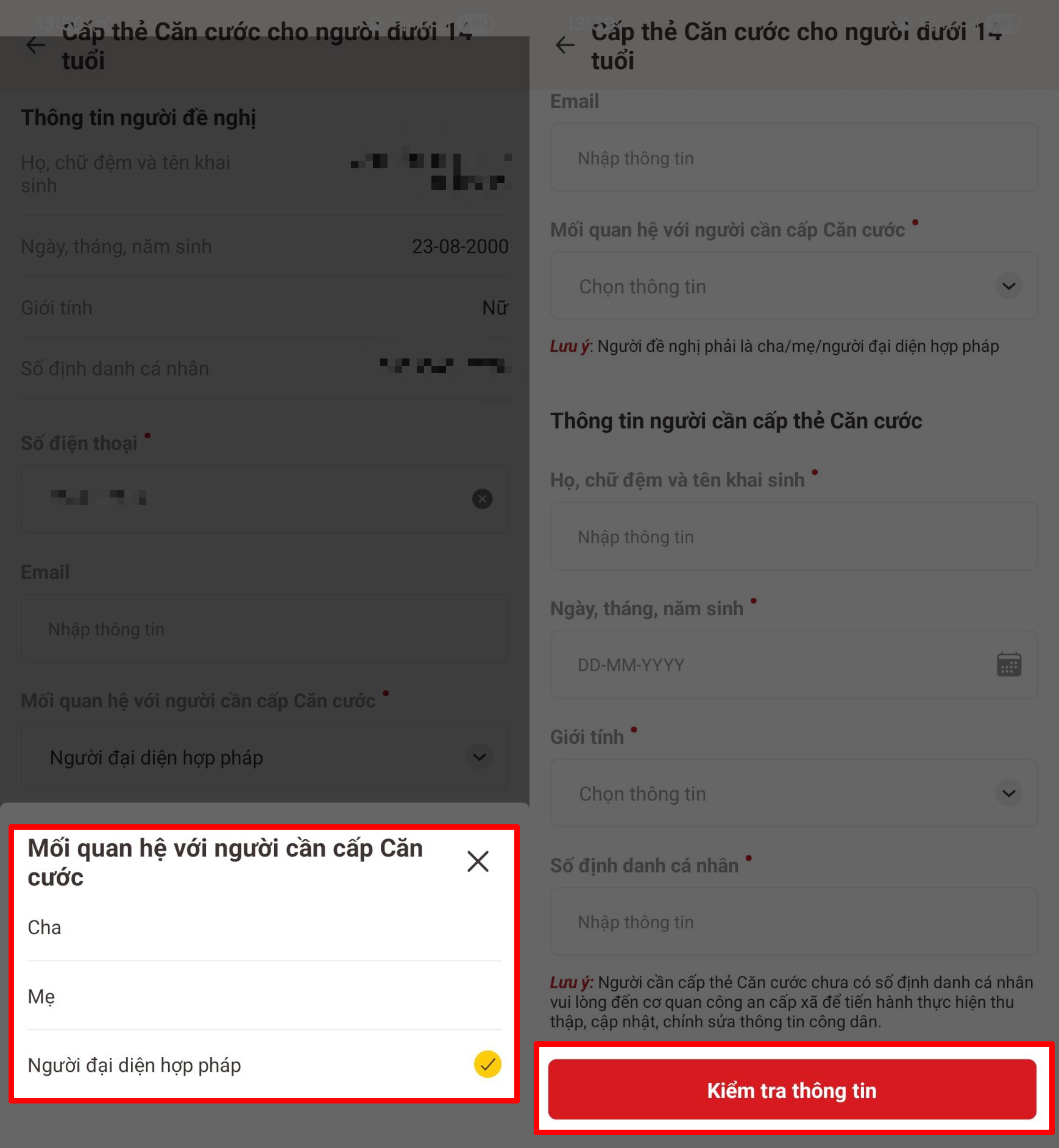 Thông tin trên thẻ căn cước của trẻ em dưới 14 tuổi
