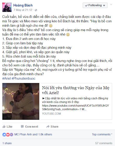 Vì hơn ai hết, Ariel hiểu rằng chỉ có tình yêu thương gia đình, đặc biệt là tình mẫu tử mới có thể tạo nên nhiều động lực tới vậy cho mẹ. Xem clip cũng là tự ngẫm suy lại để hiểu và trân trọng hơn tình yêu bao la của mẹ. Với những người đã và đang làm con, hãy để những người mẹ tuyệt vời của chúng ta biết rằng họ được yêu thương và trân trọng nhiều ra sao, rằng chúng ta biết ơn sự hy sinh và cố gắng dạt dào mà mẹ dành cho chúng ta đến thế nào. Đối với những người đang thực hiện thiên chức làm mẹ, hãy tin tưởng rằng những công việc ngoài xã hội mà bạn đang theo đuổi, chưa bao giờ và cũng sẽ không bao giờ khiến bạn trở thành những người mẹ kém vĩ đại hơn.